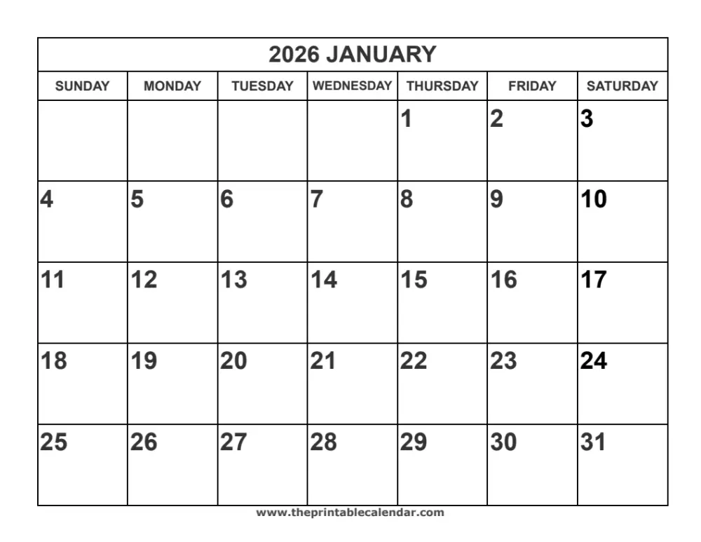 Printable 2026 January Calendar