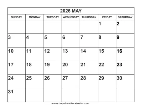 It is A4 size for 2026 May calendar. Right click on the image below and choose the option 'Save Image As' from the list to save the 2026 May calendar image to your computer. This is a completely free calendar image for 2026 May and you can start downloading.