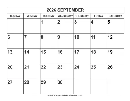 It is A4 size for 2026 September calendar. Right click on the image below and choose the option 'Save Image As' from the list to save the 2026 September calendar image to your computer. This is a completely free calendar image for 2026 September and you can start downloading.
