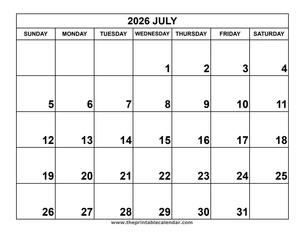 July 2026 Calendar