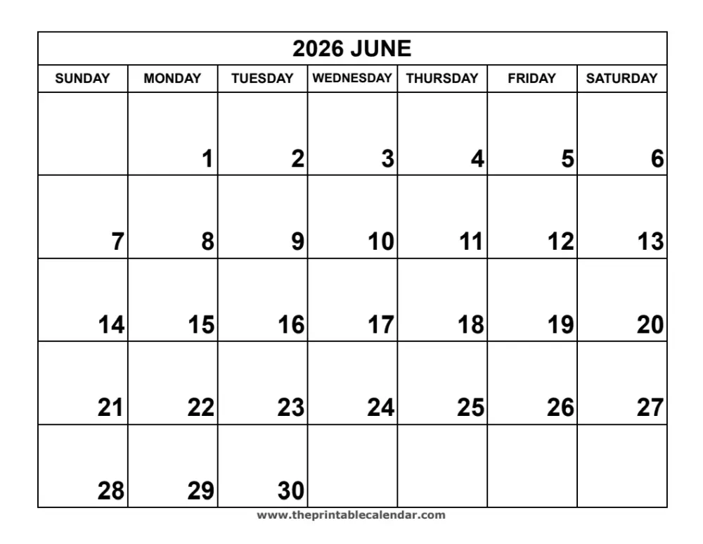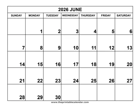 June 2026 Calendar