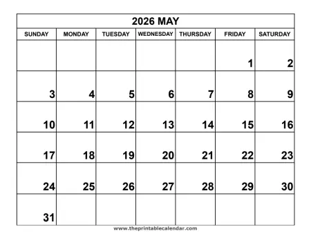 May 2026 Calendar Image